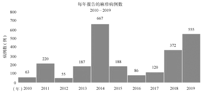 美国疾病控制与预防中心(CDC)官网公布的美国麻疹病例数(图14):截至2019年4月11日,美国20个州共出现555例麻疹病例,如无意外,2019年将会是美国几十年来麻疹疫情最严重的一年。