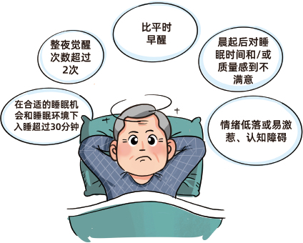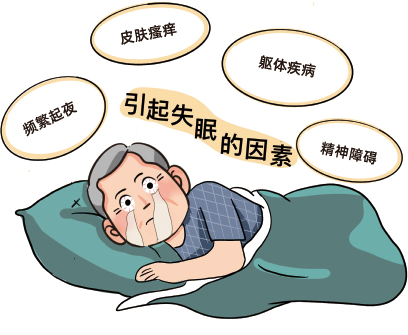 从病程上来看,失眠不仅具有持久性存在的特点,还具有一定波动性和可能自然缓解的特点。对于失眠是由患者本身患有的某些躯体疾病引起者,如前列腺增生患者常因夜间频繁起夜排尿而导致失眠,又或是因为夜间皮肤瘙痒而难以入睡的患者,需要就医治疗相关疾病才能改善失眠。老年人多患有高血压、糖尿病、高脂血症、冠心病、脑卒中、哮喘和阻塞性睡眠呼吸暂停等躯体疾病,也常同时患焦虑症、抑郁症等常见的精神障碍,此时的失眠可能是某种躯体疾病或某种精神障碍的一个临床症状,也可能是一个独立的疾病。当患者就医时,接诊医生不仅要分析患者基础疾病的情况,还要分析失眠是否与患者所面临的急性应激事件,或使用了导致失眠的药物/物质,或患者平时睡眠习惯很差,或存在睡眠环境的改变等情况有关。
